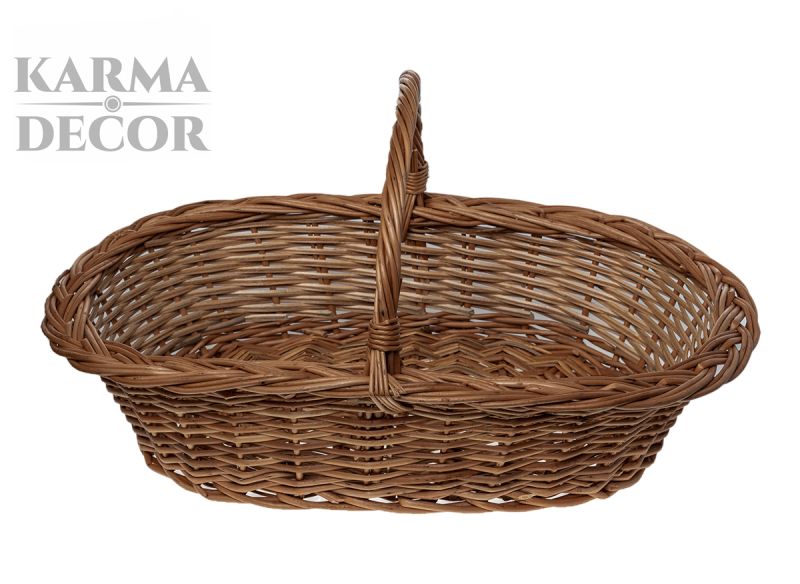 Cos din rachita, oval, dimensiuni 50x35x14 cm, cu maner 33 cm.Cosurile sunt lucrate si impletite100% manual si pot varia dimensiunile cu pana la 15%.Un coș de răchită este un obiect tradițional, confecționat din răchită sau alte materiale naturale, precum nuiele sau trestie. Sunt adesea folosite pentru a transporta alimente, produse textile, obiecte de artizanat sau orice altceva care necesită un recipient ușor și durabil. Aceste coșuri au fost folosite de-a lungul istoriei și continuă să fie apreciate și utilizate în prezent, atât pentru funcționalitatea lor, cât și pentru farmecul lor tradițional.